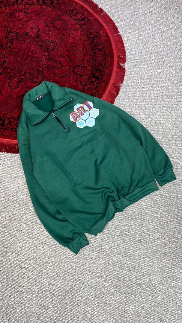دورس نیم زیپ داخل کرکی زنبوری سبز