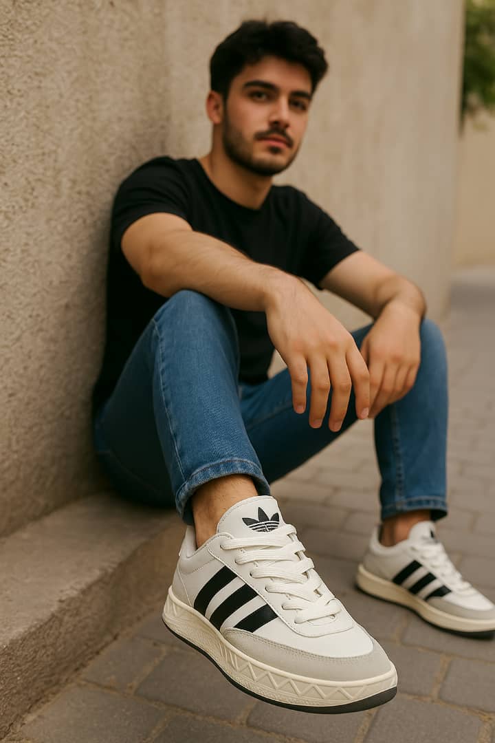 کتونی آدیداس سه خط نیم جیر سفید طوسی